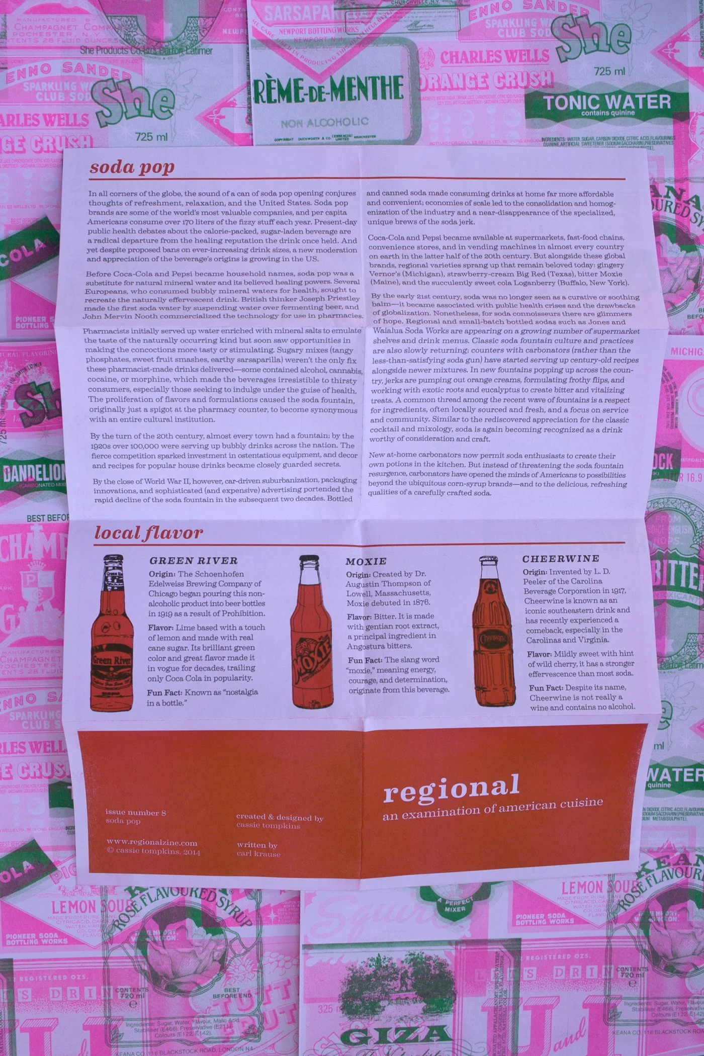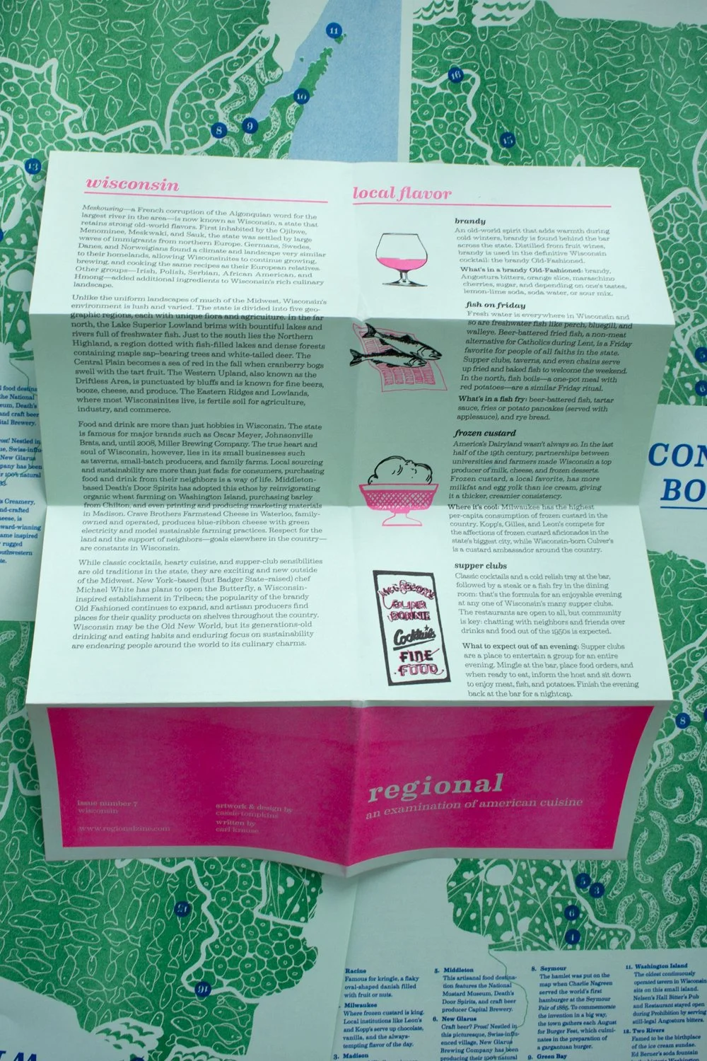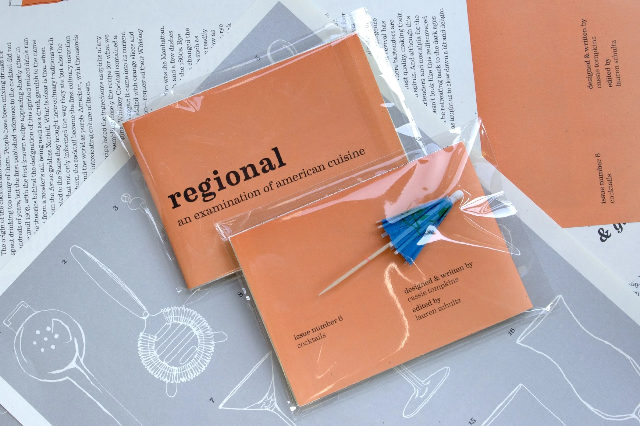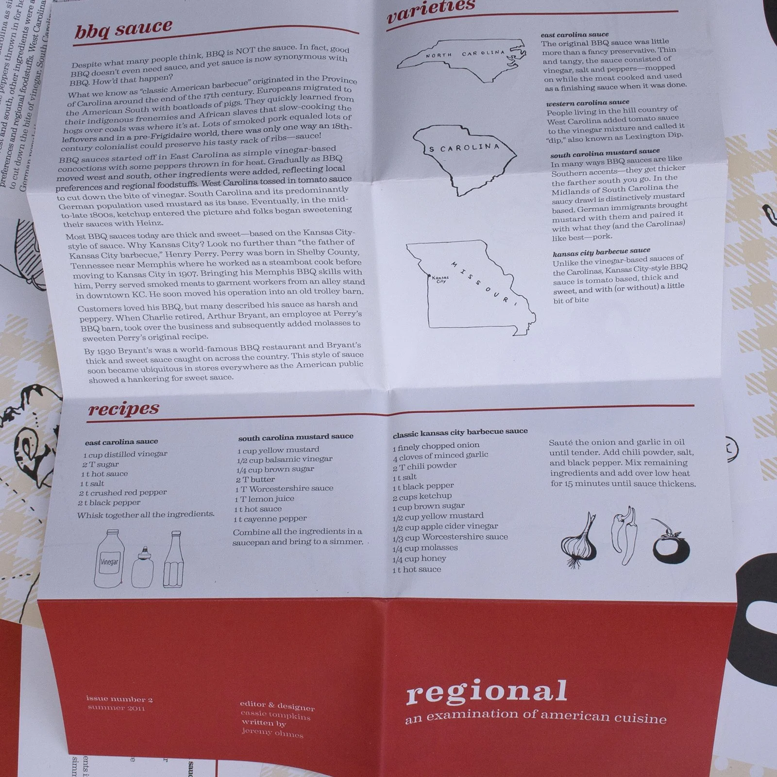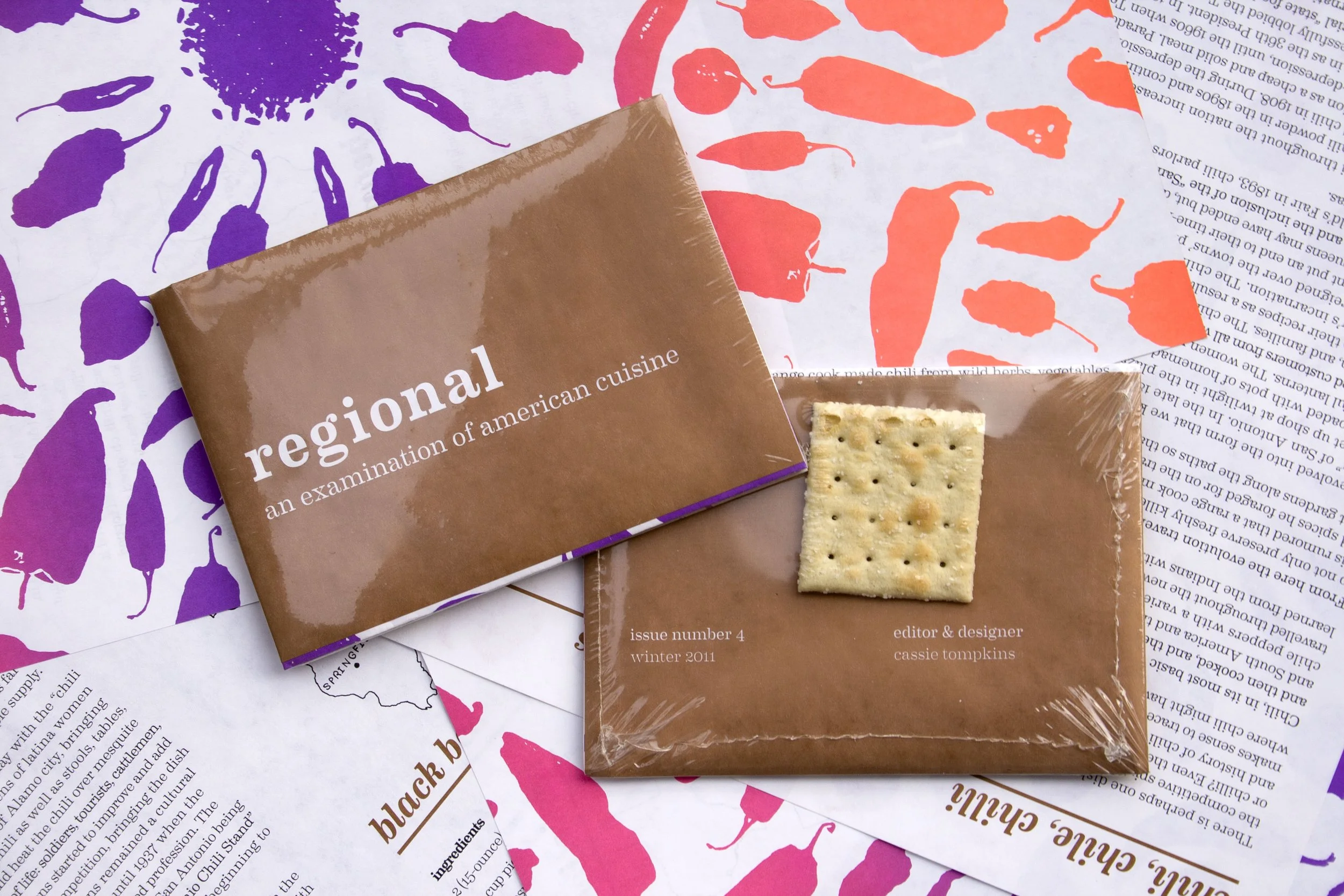 Regional was a zine I made from 2010–14 that examined the history and culture of American cuisine. Each issue explored a specific type of food or region, was uniquely packaged, and unfolded into a poster of original artwork.
